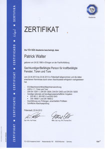 Sachverständiger für kraftbetätigte Fenster, Türen und Tore